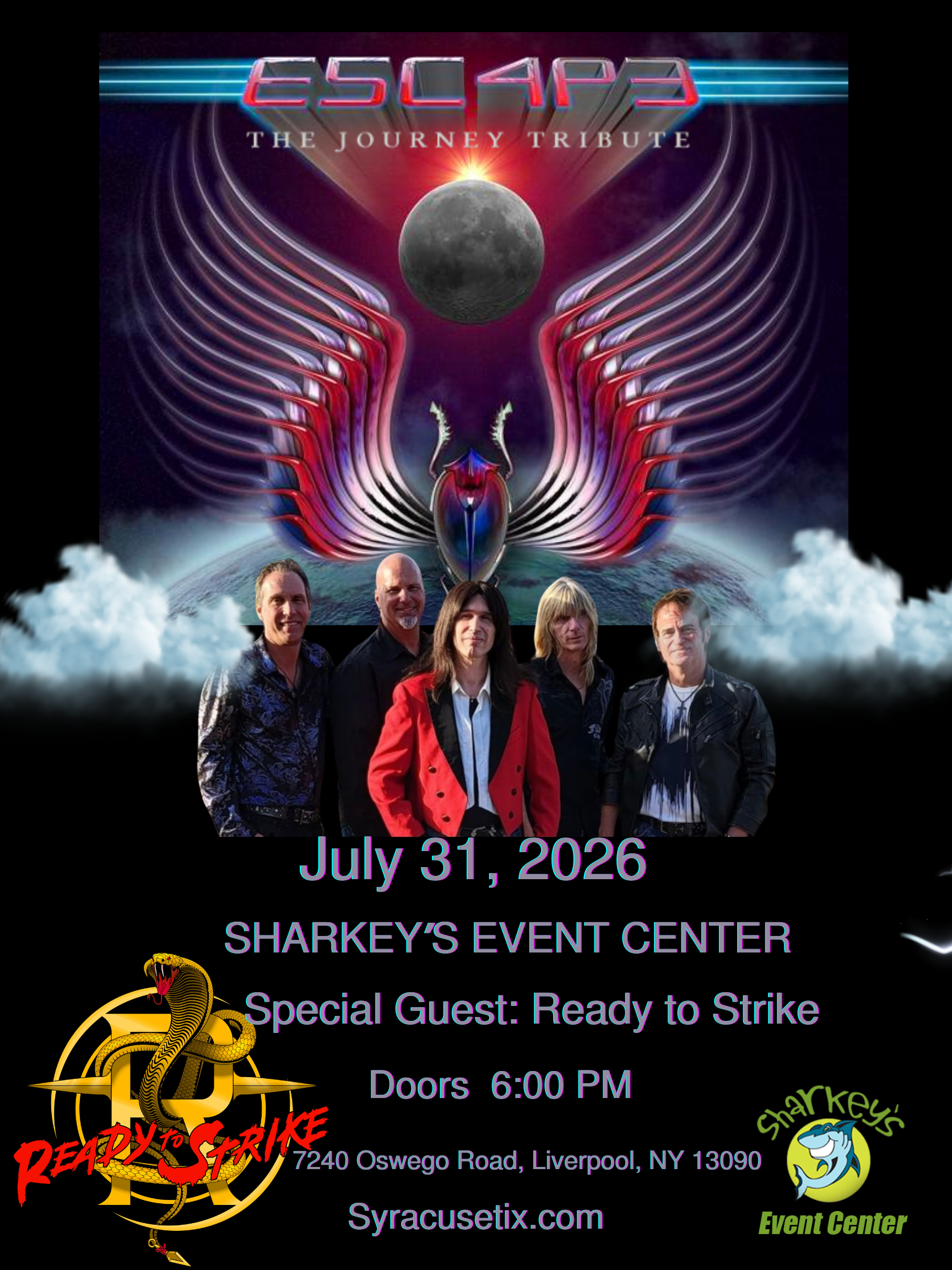 Sharkey's, under the Burritt Motors Pavilion Liverpool, NY, United StatesESCAPE: A Journey Tribute Returns on Friday, July 31, 2026 For over three decades, E5C4P3 has set the gold standard for Journey tribute bands, delivering the sound, look, and energy […]