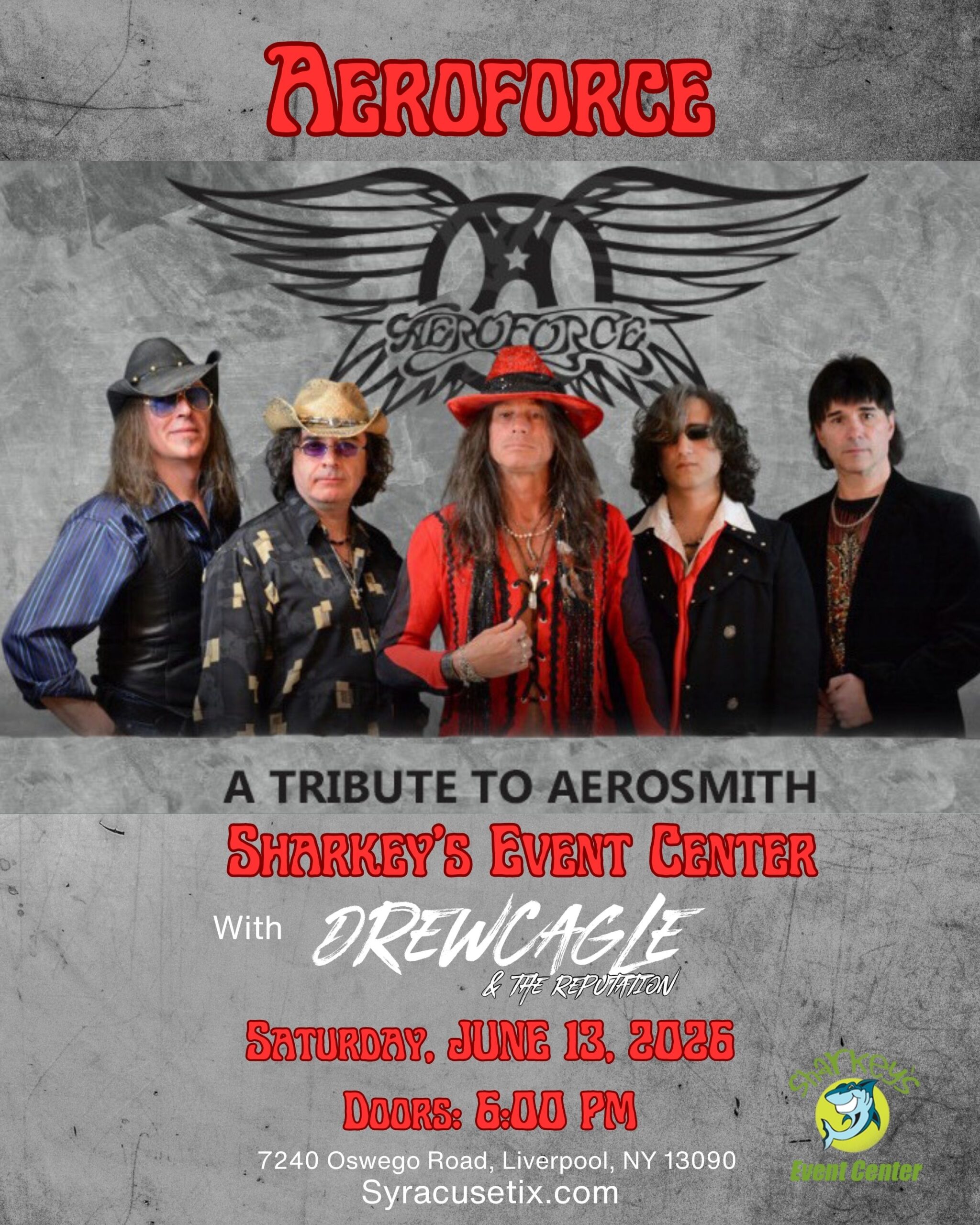 Sharkey's, under the Burritt Motors Pavilion Liverpool, NY, United StatesAEROFORCE – The Ultimate Aerosmith Tribute 📅 Saturday, June 13, 2026 Formed in the early ’90s by “Tyler” Bob Gregory and Paul Gayne, AEROFORCE was built for one mission: deliver […]