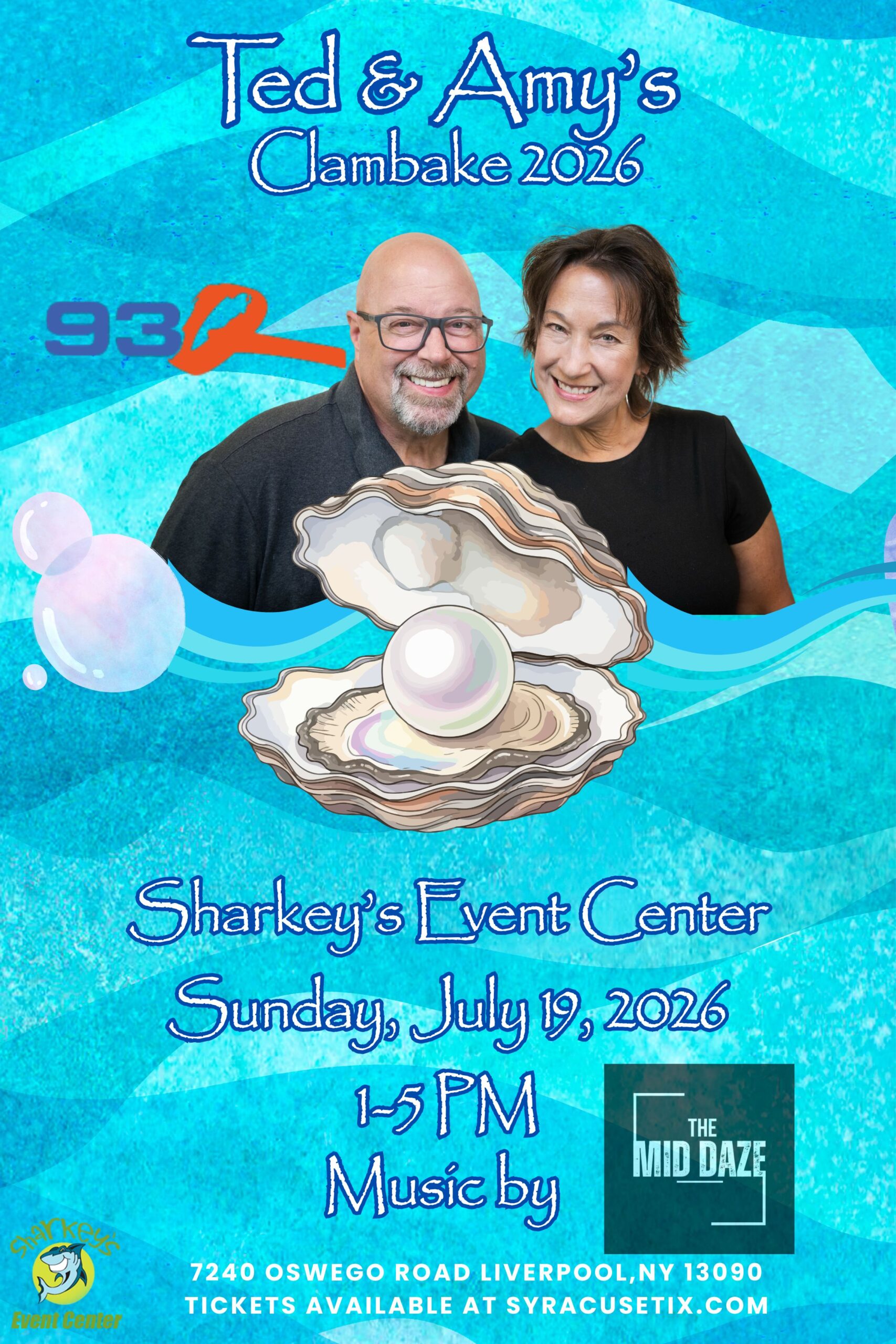 Sharkey's, under the Burritt Motors Pavilion Liverpool, NY, United States🌊 🦪 Ted & Amy’s 4th Annual Clambake 🦪 🌊 Sunday, July 19, 2026 • 1–5 PM Sharkey’s Event Center Summer in Syracuse isn’t complete without Ted & Amy’s Clambake […]