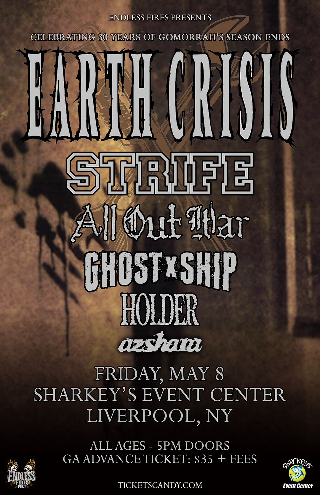 Sharkey's, under the Burritt Motors Pavilion Liverpool, NY, United StatesA landmark night for hardcore and metal fans, as Syracuse’s own Earth Crisis return to celebrate the 30-year anniversary of Destroy the Machines (GSE). Widely recognized as one of the […]