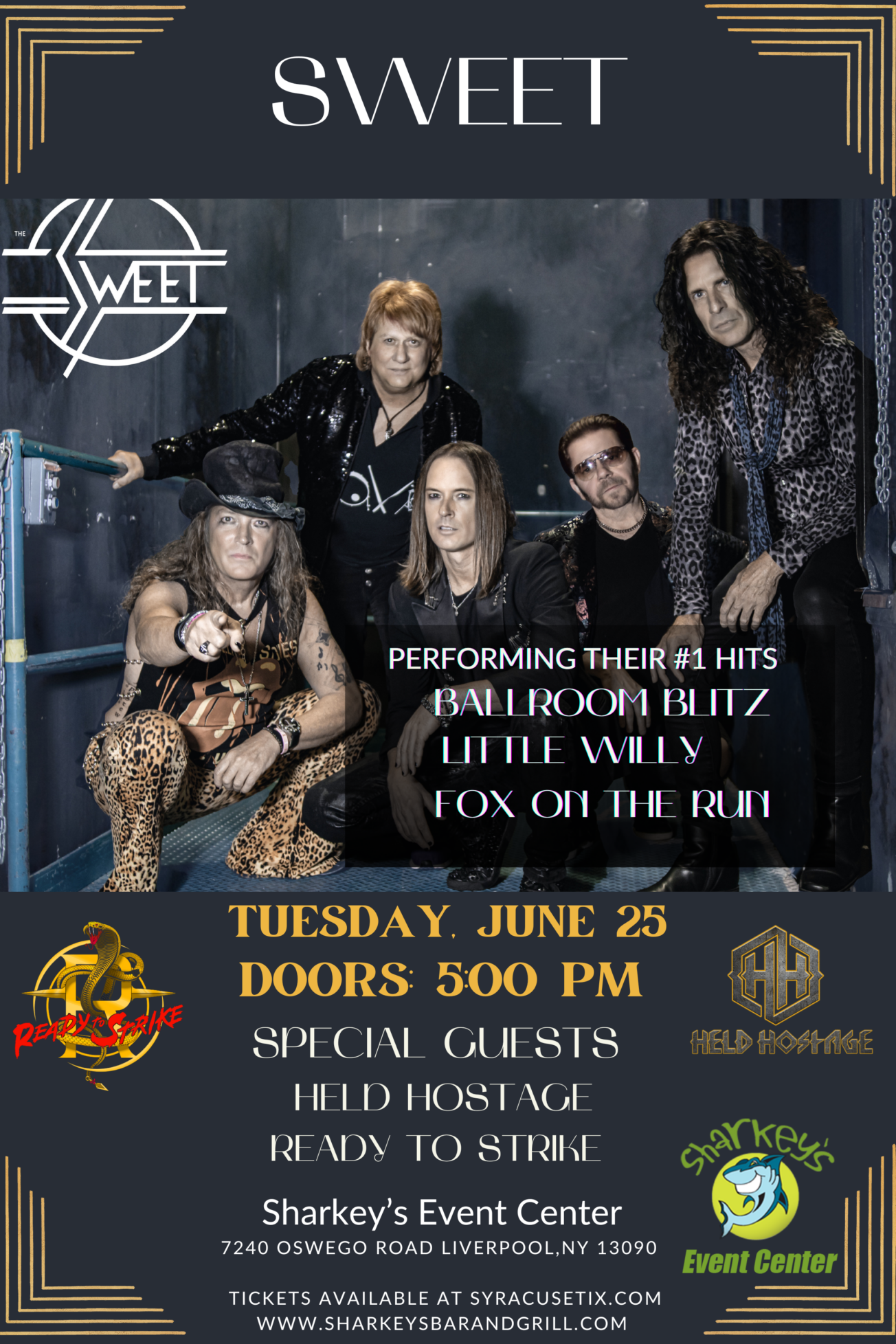 Under the Pavilion Rain or Shine. Tickets are available at the doors. Day of Show prices:  GA Standing - $ 40 Preferred seated - $55 VIP seated closest to stage - $70 Join us for an unforgettable evening at Sharkey’s Event Center as the legendary band Sweet takes the stage on June 25! Doors at […]