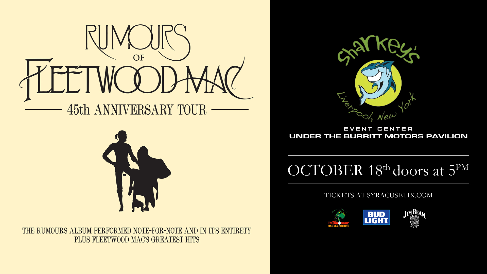 Sharkey's, under the Burritt Motors Pavilion Liverpool, NY, United StatesRumours of Fleetwood Mac. Celebrating the 45th Anniversary of Rumours. They will be performing all of Fleetwood Macs greatest hits. Preferred seating tickets guarantees seats in a section closest to the stage. Online tickets are not being sold after 12:00 Noon 10/18/22 Please purchase your tickets at the door, if buying after 12:00 noon. […]