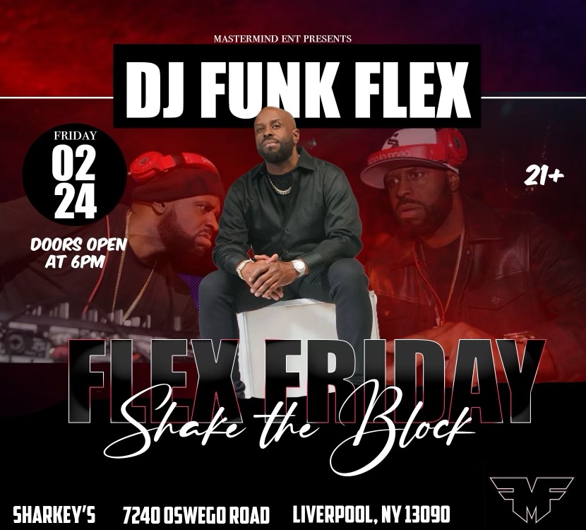 Sharkey's Event Center Liverpool, NY, United StatesWelcome to Shake The Block with DJ Funk Flex! At Sharkey’s Event Center Date: Friday February 24, 2023 Tickets are available at the door the day of the show. Doors: 6:00 PM Show: 7:00 PM - 11:00 PM You Must be 21 to attend and purchase tickets This event is Presented by Mastermind Entertainment (Show […]