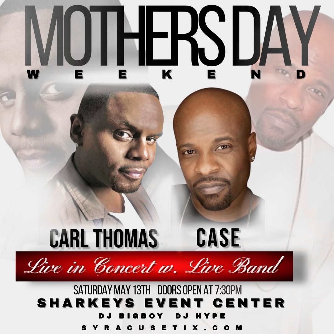 Sharkey's, under the Burritt Motors Pavilion Liverpool, NY, United StatesThis show was completed on Saturday, May13, 2023. Tickets are no longer available for purchase. Grammy nominated R&B greats, Carl Thomas and Case are performing in Concert with a Live Band @ Sharkey’s this Mother’s Day Weekend On Saturday May 13, 2023. Doors open @ 7:30 PM. General Admission Standing: $40 Elite Seated […]