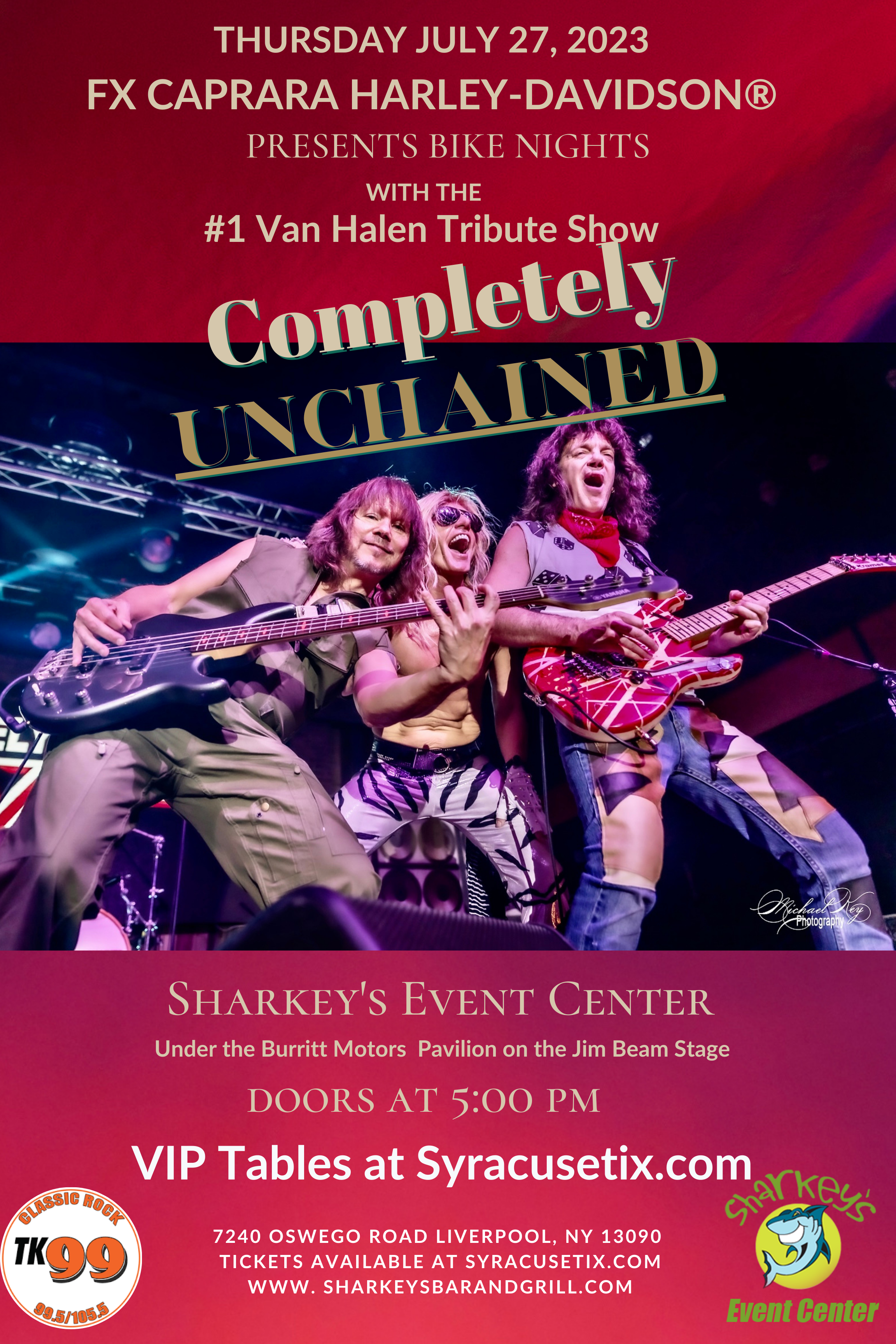 Sharkey's, under the Burritt Motors Pavilion Liverpool, NY, United StatesRev up your engines and get ready for a night of pure rock 'n' roll adrenaline this July 27th as FX Caprara Harley-Davidson proudly presents a special Bike Night at Sharkey's Event Center featuring the electrifying sounds of Completely Unchained, the ultimate Van Halen tribute band! From blistering guitar solos to soaring vocals, Completely Unchained […]