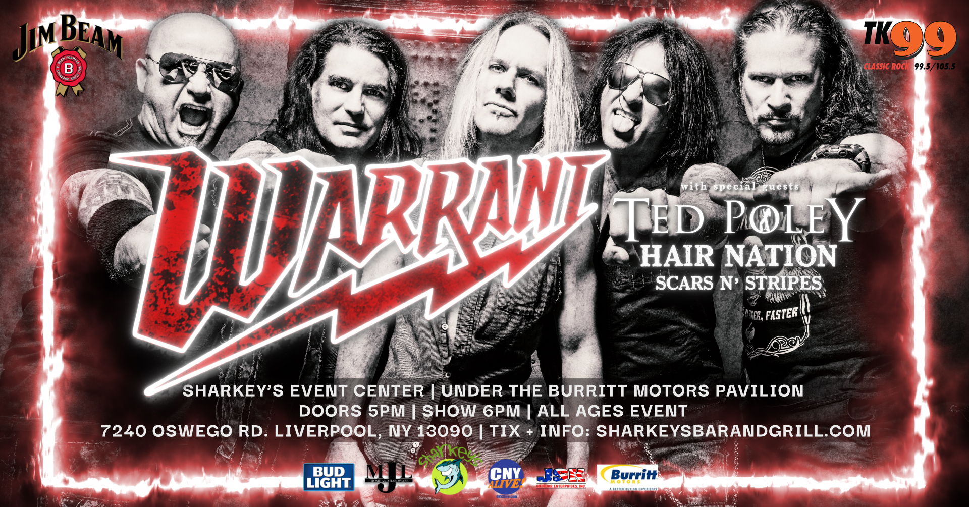 On the Jim Beam Stage Under the Burritt Motors Pavilion Liverpool, NY, United StatesAll Ages (under 18 must be accompanied by parent or guardian) Day Of Show: All Tickets Increase $10.00 Per Ticket Jim Beam Presents Warrant – Cherry Pie 30th Anniversary with Special Guests Scars and Stripes Hair Nation Ted Poley On the Jim Beam stage under the Burritt Motors Pavilion Rain or Shine All ages Doors […]