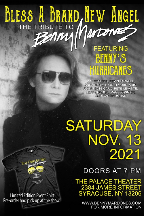 The Palace Theater 2384 James St, Syracuse, NY, United StatesDoors at 7:00 pm www.BennyMardones.com for more information Also Available Bless a Brand New Angel: The Tribute To Benny Mardones t-shirts! Official Event Shirt - Limited Quantities Available Limited Edition Benny Tribute Event T-shirt Choose quantity then choose sizes when you hit "get tickets" Order in advance to guarantee you get a shirt. Shirts will be […]