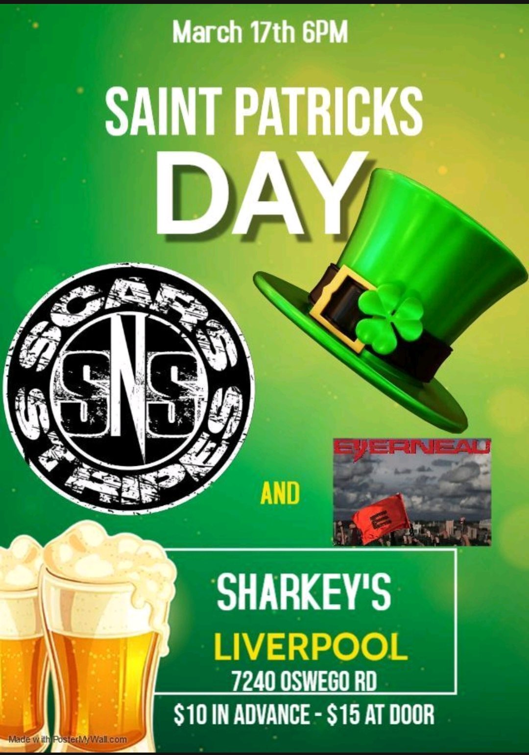 Sharkey's Event Center Liverpool, NY, United StatesSt. Patrick's Day -The Big Green Party With Everneau Tickets $15.00 at the Door